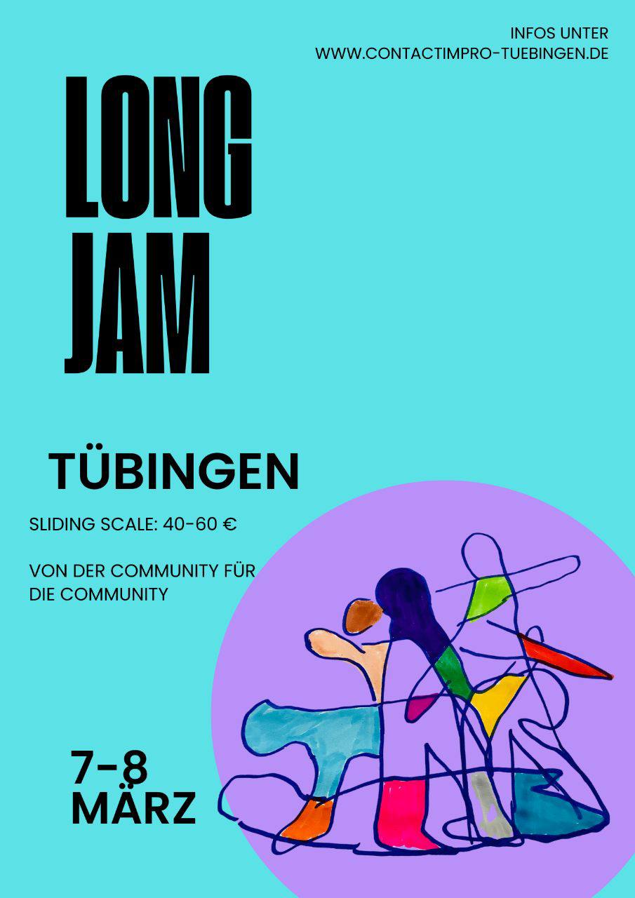 Ein Wochenende für alle, die Contact Improvisation erleben, erforschen und teilen möchten Von der Community, für die Community. /Offen für alle Erfahrungsstufen: Neulinge, Erfahrene und Interessierte. Dieses Wochenende ist ein Raum für gemeinsames Erforschen, Bewegung, Begegnung und die lebendige Praxis von Contact Improvisation./ *Zeiten*: 7.3. Samstag: 8:30–22:00 Uhr 8.3. Sonntag: 8:30–17:00 Uhr *Ort*: Gymnastikhalle, Tübingen-Kilchberg, Rammertstraße 27 *Ablauf & Inhalte*: * Morgens: Contemplative Dance Praxis (Meditation, Tanz, Contact Improvisation) * 5 Jams mit Warm-ups * Jams mit Live-Musik * Family-Jam mit Kindern am Sonntag Vormittag * Möglichkeiten zum Ausdruck durch Malen und Gedanken teilen * Location mit Blick ins Grüne * Community-Feld, Austausch & Verbindung alles getragen von gegenseitigem Respekt und Achtsamkeit. *Programm*: https://www.contactimpro-tuebingen.de/long-jam/ *Verpflegung*: Tee, Kaffee und kleine Snacks werden bereitgestellt. Mittags und abends gibt es ein Mitbring-Buffet zu dem jede*r etwas beiträgt. *Barrierearm*: Die Räume sind barrierearm erreichbar. Bitte gib uns vorher Bescheid, wenn du besondere Bedürfnisse hast. *Alle willkommen*: Jede*r Körper, jedes Alter. *Beitrag*: Sliding Scale 40–60 € *Anmeldung unter*: https://forms.gle/k9DYaJe6x2VHsp6h9 Wir freuen uns auf ein tanzreiches Wochenende! Euer Orga-Team: Frederic, Annette, Daniela, Nora, Birgitta, Tarmor & Caren -- www.movement-contact-play.de Frédéric Holzwarth 0170-2740663