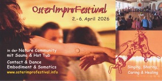 Herzlich Willkommen zum 24. OsterImproFestival  2.-6. April 2026 in der Nature Community in Schönsee, Bayrischer Wald in diesem Jahr mit einem Intensive von Ingo & Kabiro "Synergien im Contact" Tanzen - Embodiment - Contact Improvisation - Singkreise - in Achtsamkeit begegnen - verkörpertes Bewusst-Sein - Stille - Sharing - Live Music - Somatic Community - Sauna & Hot Tub & Feuer Dieses Festival hat in seiner Historie verschiedene Wandlungsphasen durchlaufen von ganz viel Performance Kultur und Contact Improvisation und anderen Improvisationskünsten, wunderbaren internationalen Lehrern und viele Teilnehmende mit all ihrer Kreativität hin zu dem was sich für uns über die Jahre als wesentlich für eine gesunde und lebenswerte Kultur mit einem Bewusstsein für Körper, Geist und Seele mit entsprechendem Austausch entwickelt hat. Daraus ergibt sich unser aktuelles Angebot... Workshopleiter*innen: Ingo Rosenkranz - Kabiro Eva Scheller - Jyoti Rainer - Pavla Béreš - Peter Krempelsetzer - Rahel Comtesse Singkreis: Patrick Müller Musik: Rahel Comptesse, Klaus Vogelsänger, Peter Krempelsetzer und Patrick Müller www.osterimprofestival.info <http://www.osterimprofestival.info/> https://web.facebook.com/events/3715084121959596 <https://web.facebook.com/events/3715084121959596/?acontext=%7B%22event_action_history%22%3A%5B%7B%22surface%22%3A%22home%22%7D%2C%7B%22mechanism%22%3A%22search_results%22%2C%22surface%22%3A%22search%22%7D%5D%2C%22ref_notif_type%22%3Anull%7D>